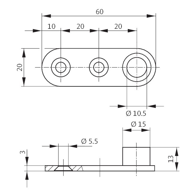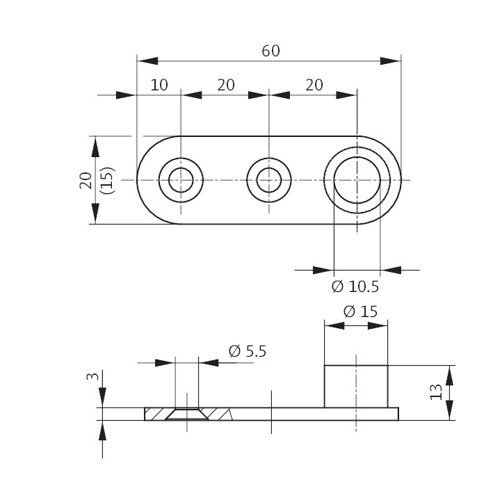 BKS Stangenführungsplatte B 9019 0001 für 10mm Rundstange 20X60X3mm
