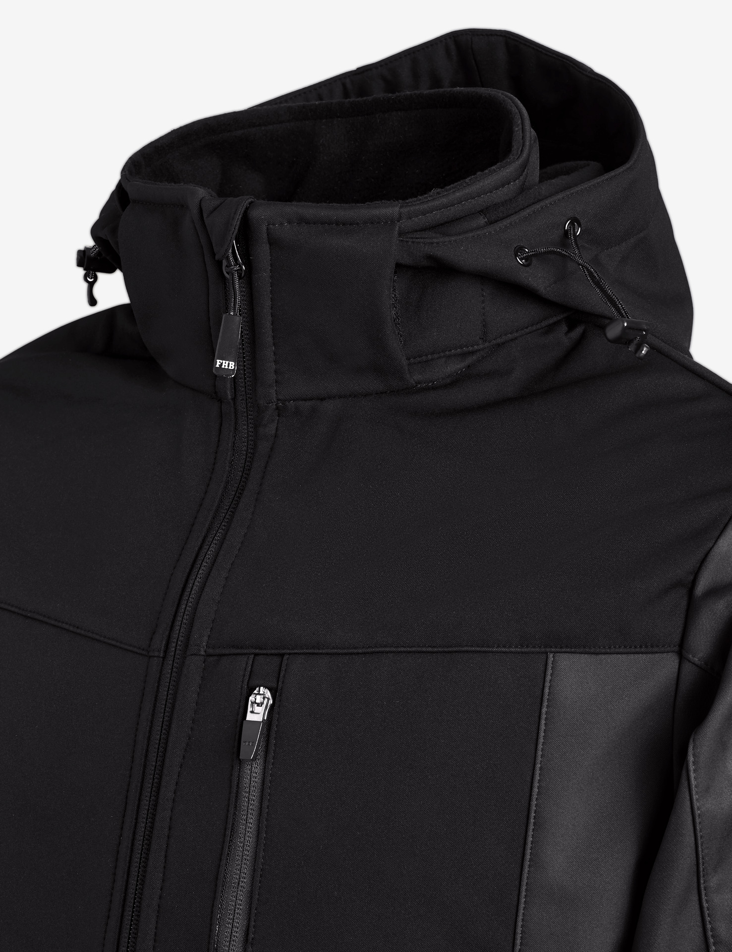 FHB JANNIK Softshelljacke, stark wasserabweisend, winddicht und atmungsaktiv; High-Performance, 10.000mm Wassersäule, 5.000g/qm in 24 Std.; neues FHB-Softshell-Gewebe, dehnbares und extrem geschmeidiges Obermaterial, abnehmbare Kapuze mit Weitenregulierung, FHB Design-Element am Unterarm, körpernahe Passform, 1 offene und 1 mit RV verschließbare Innentasche, Arm-und Bundweitenregulierung