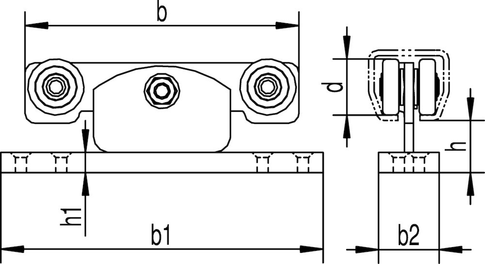 HELM Rollapparat 112; Ausführung: doppelpaarig; Befestigungsart: zum Einhängen; Verstellbarkeit: keine Verstellmöglichkeit; Material Rollapparat: Stahl; Oberfläche Rollapparat: galvanisch verzinkt; Einsatzbereich: Schiebetor; Basis: Rollapparat; Material Rollen: Stahl; Länge Rollapparat: 105mm; Plattenlänge: 100mm; Plattenbreite: 20mm; Zusatzinformation: Keine Verstell- und Aushängemöglichkeit; Rollendurchmesser: 22mm