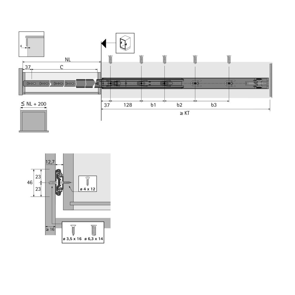Hettich Kugelauszug KA 4532 Push to open, 12,7 mm Einbaubreite, 300 mm 9114281