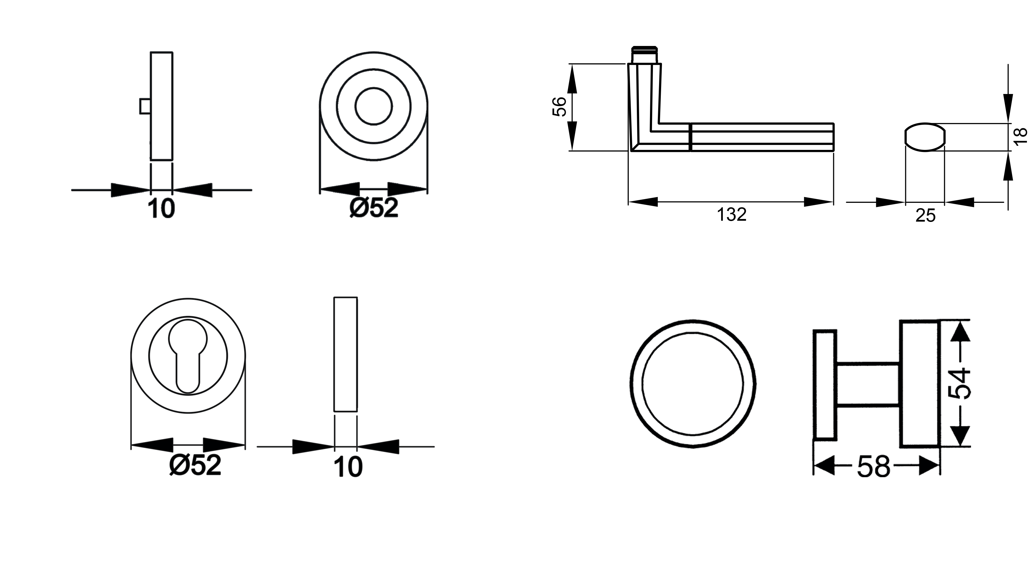 ER48 - Oregon auf dreiteiliger, runder Rosette in Edelstahl poliert / matt, Wechselgarnitur mit Knopf EK530 rechts, Gebrauchskategorie 3 nach DIN/EN1906 für Türstärke 38mm - 48mm