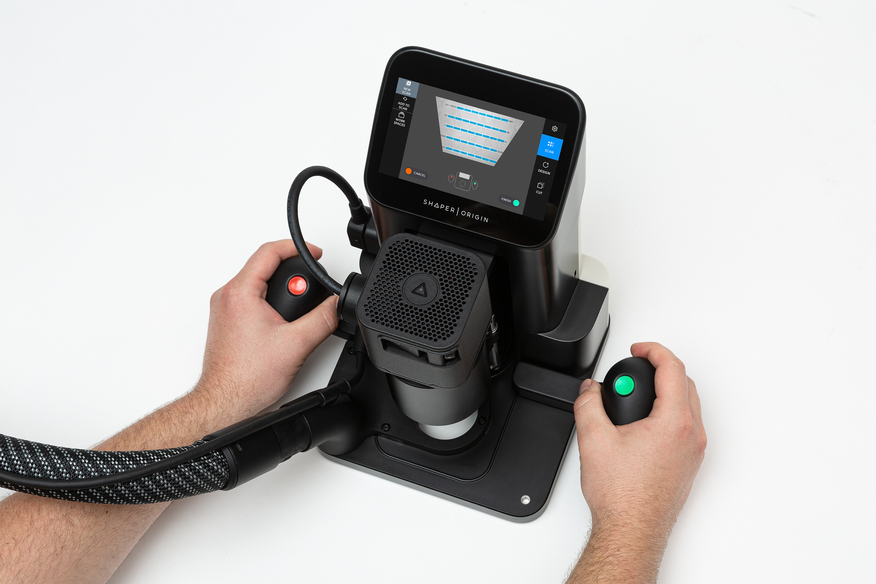 Shaper Origin ist die weltweit erste handgeführte CNC Fräse, mit der du digitale Präzision ganz einfach in deine bekannten Arbeitsprozesse integrierst. Dank intuitiver Bedienung, automatischer Fräskorrektur und On-Tool-CAD macht sie viele Prozesse in deiner Werkstatt einfacher, präziser und effizienter.