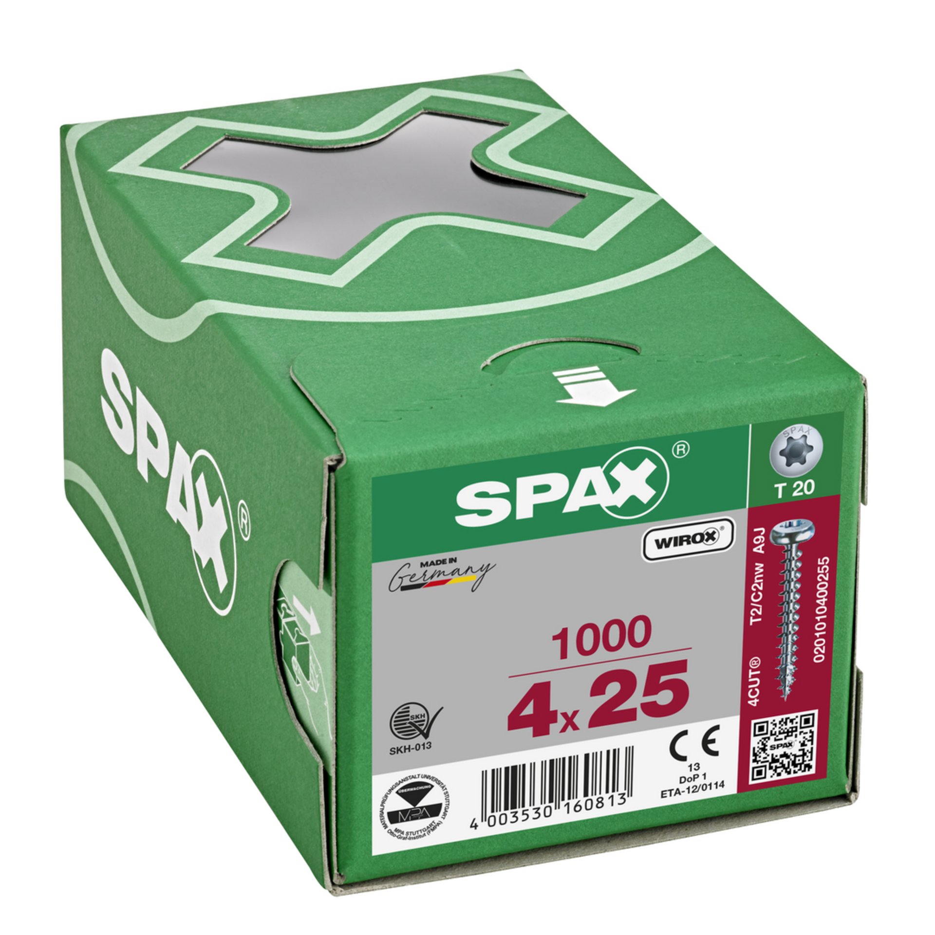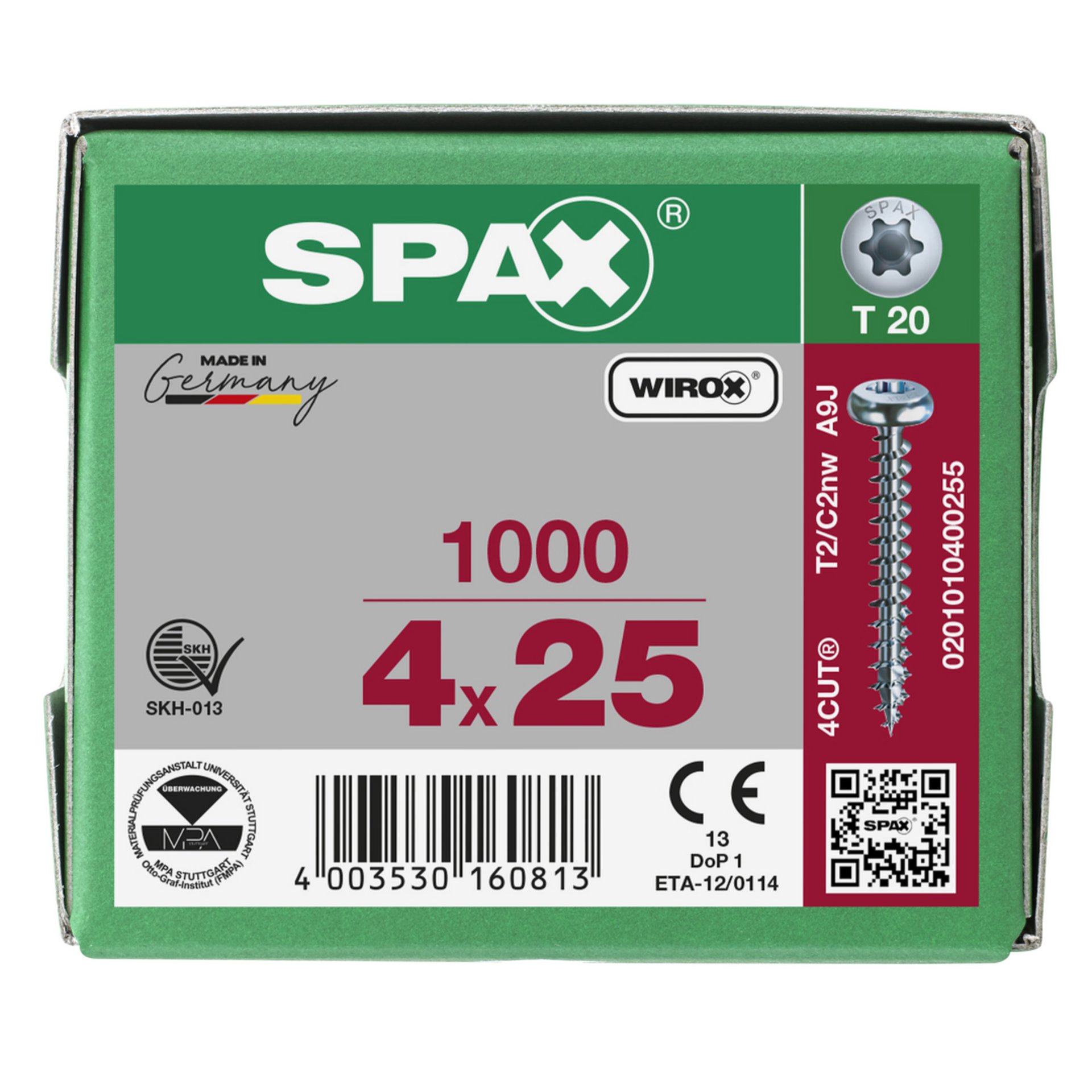 Spax Schrauben Halbrundkopf 4,0X25mm Torx T 20 hell verzinkt 1000Stk 201010400255