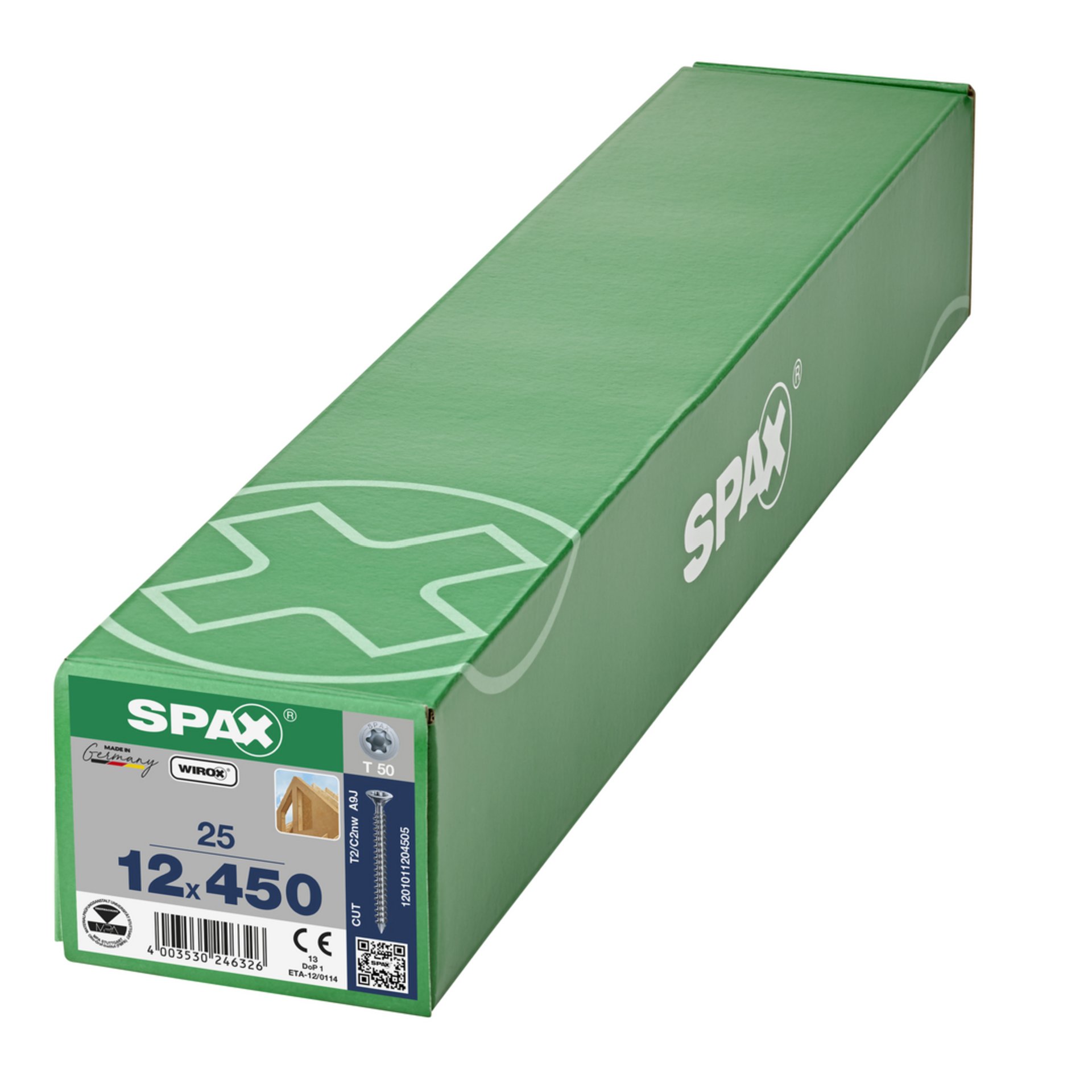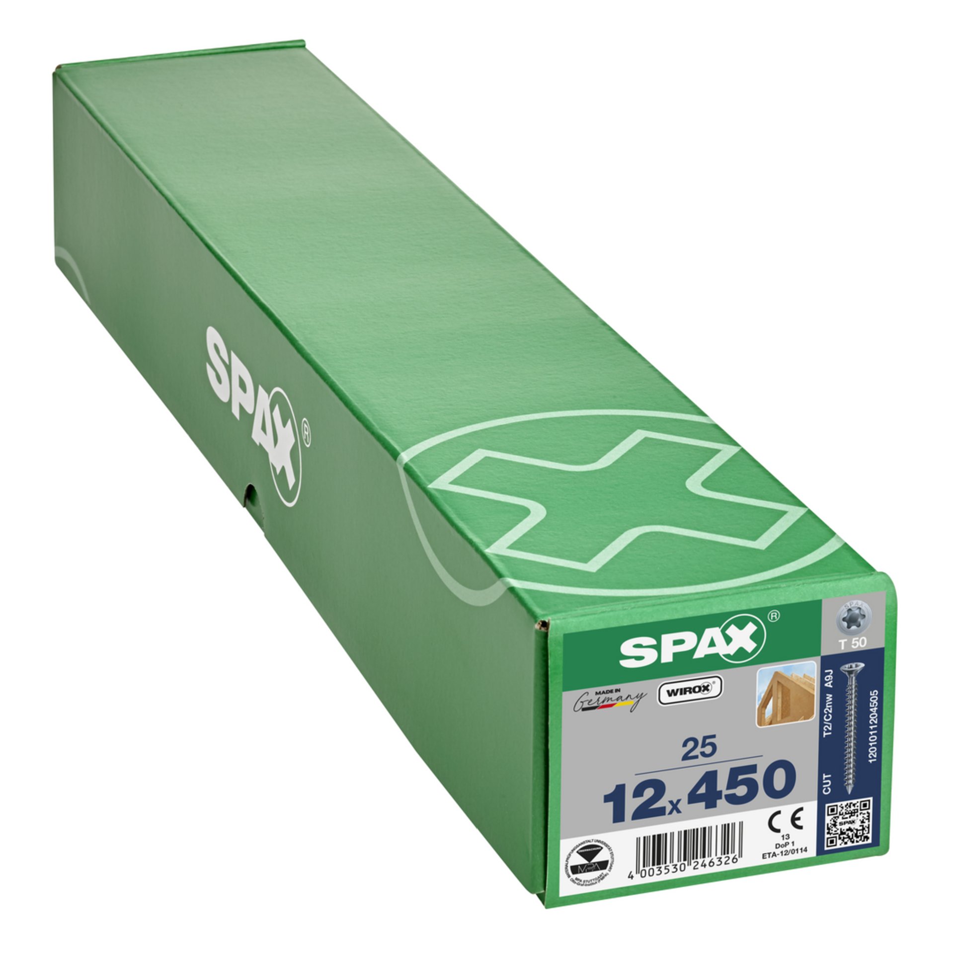 Spax Schrauben Senkkopf 12X450mm Fräsrippen T50 Vollgewinde Cut Wirox Torx 25Stk 1201011204505