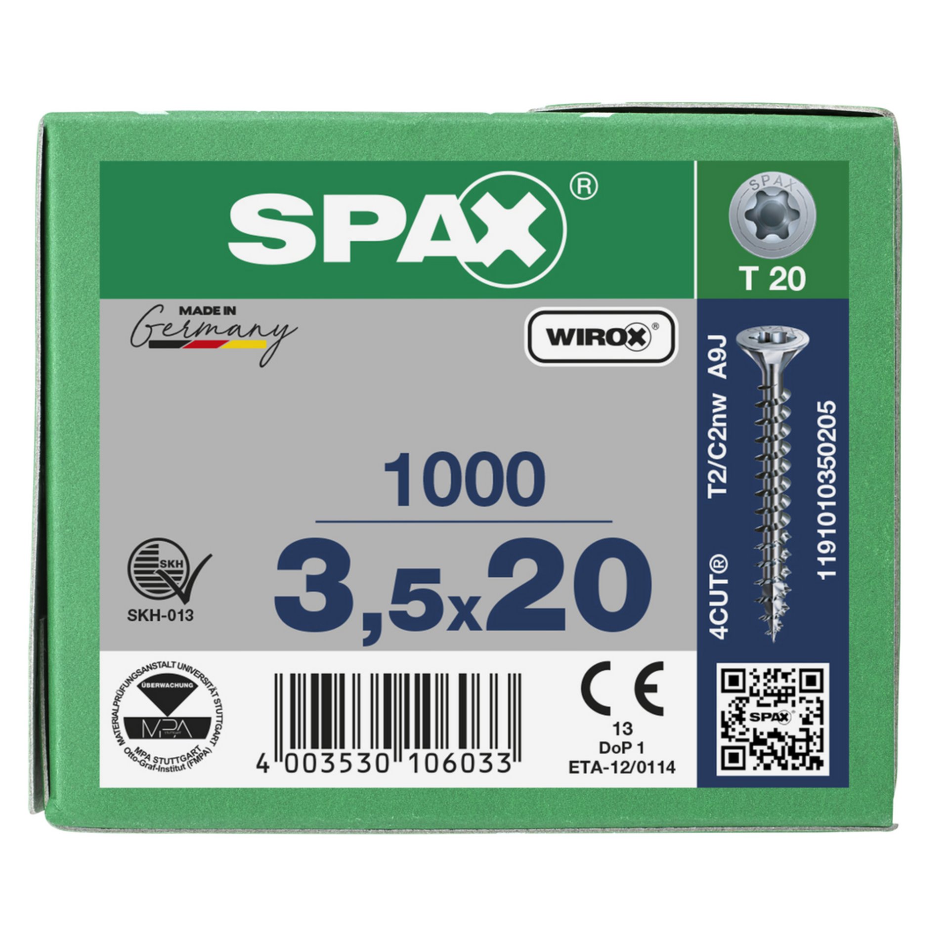 Spax Schrauben Senkkopf Torx 3,5X20mm Wirox T20 Vollgewinde 1000Stk 1191010350205
