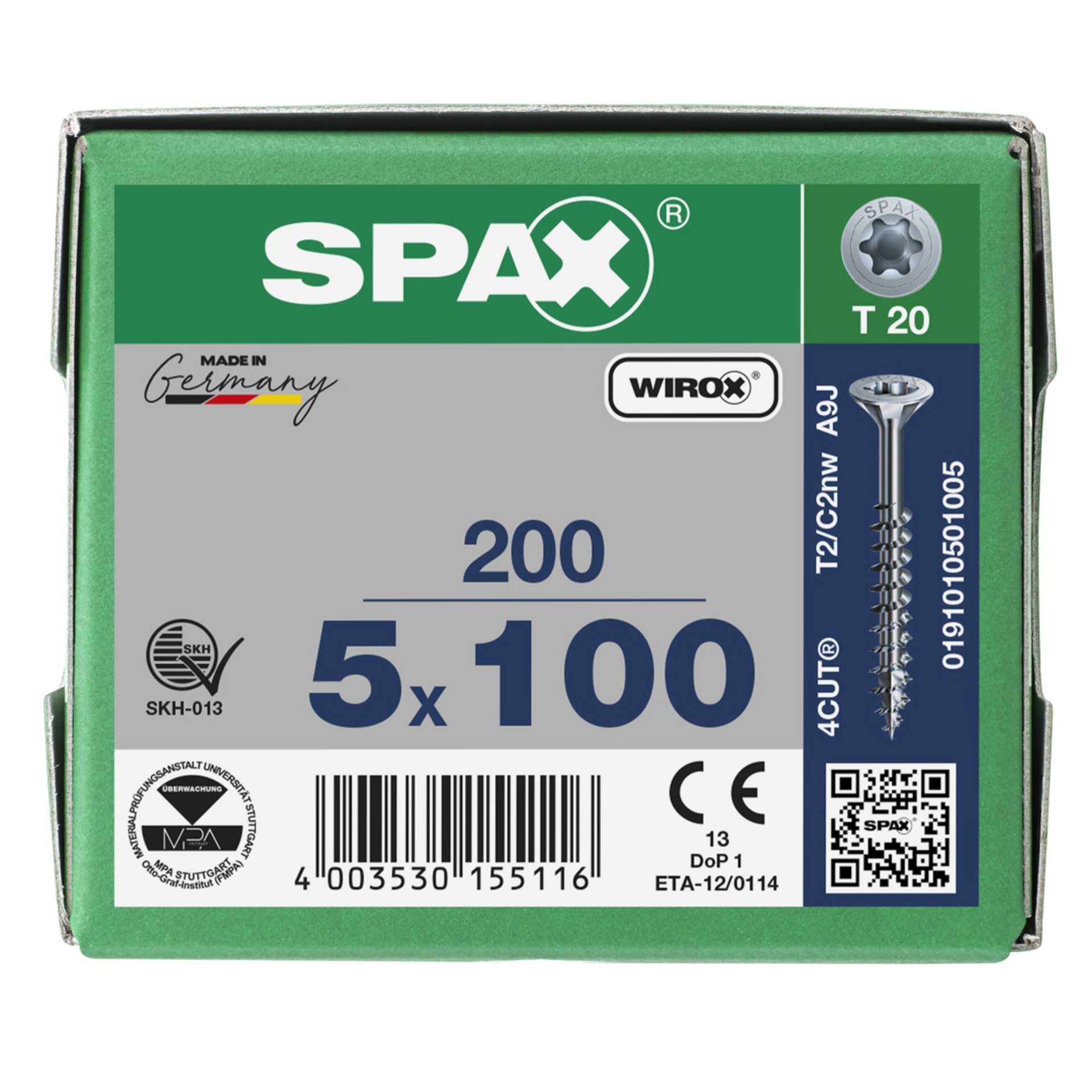 Spax Schrauben Torx 5,0X100mm Wirox T20 Teilgewinde 200Stk 191010501005