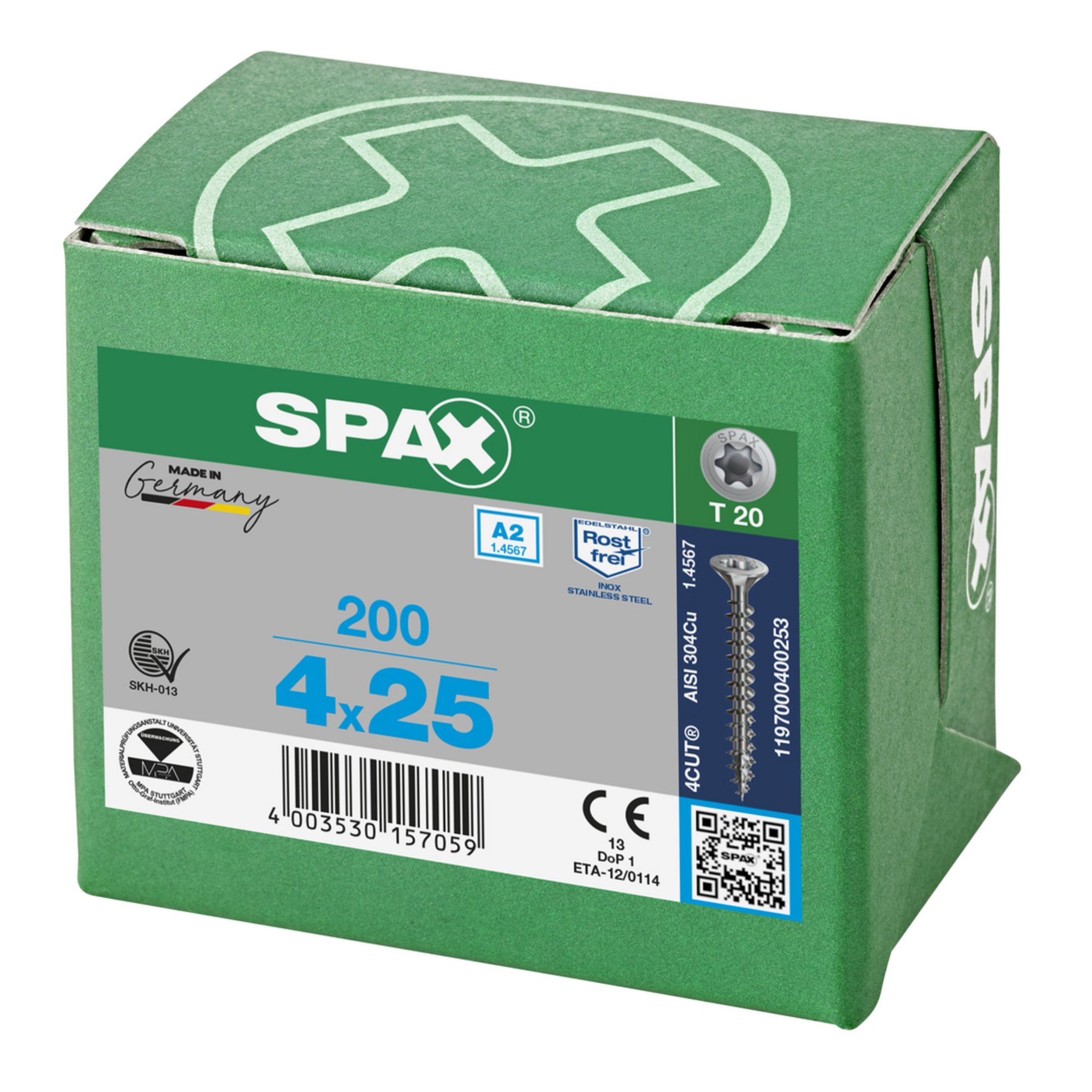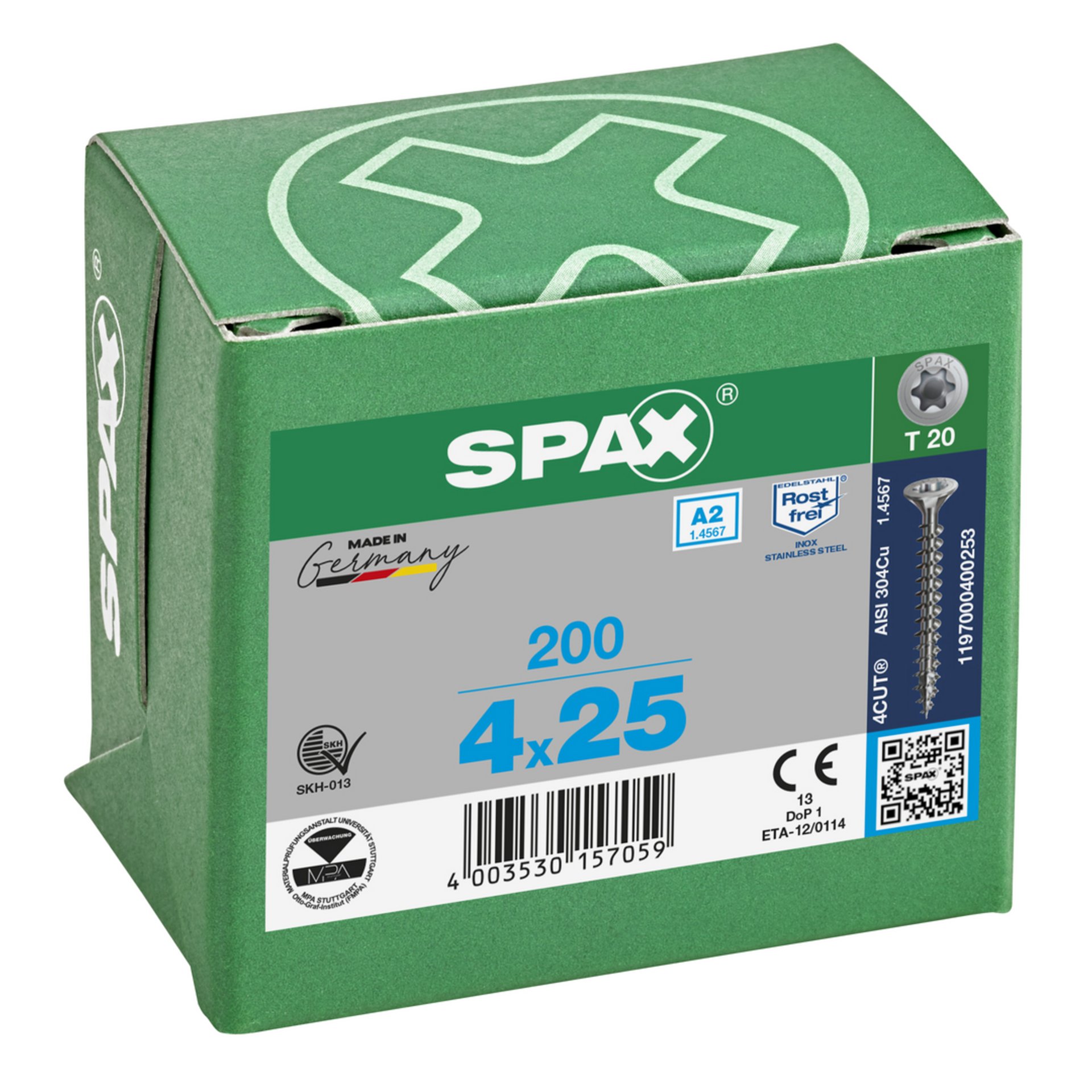 Spax Schrauben V2A Torx 4,0X25 T20 Senkkopf Vollgewinde 200Stk 1197000400253
