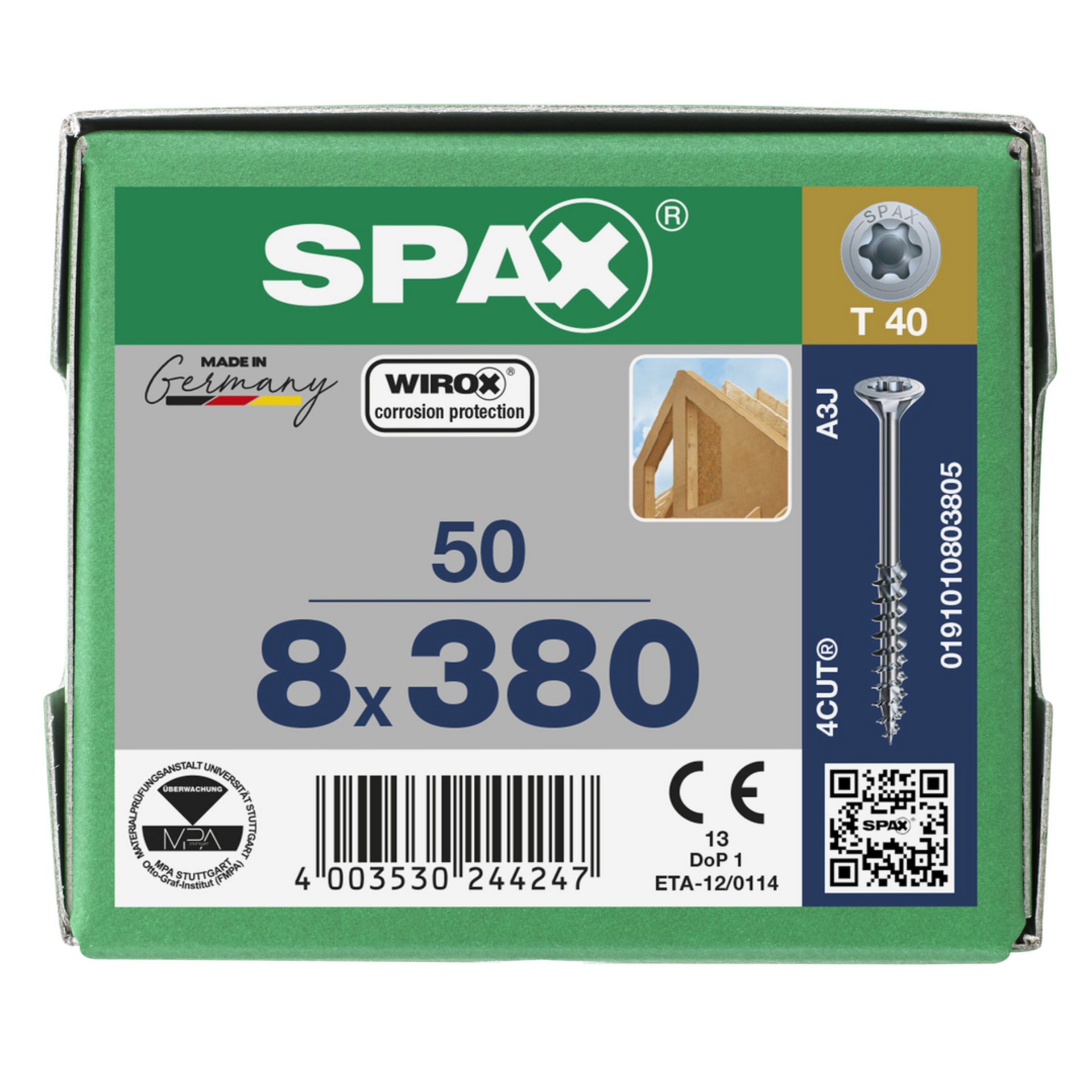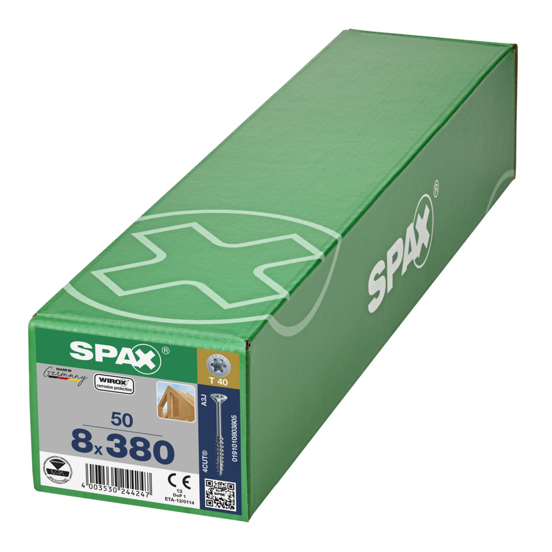 Spax Schrauben Torx Teilgew. 8,0X380 T40 hell verzinkt/Wirox 50Stk 191010803805