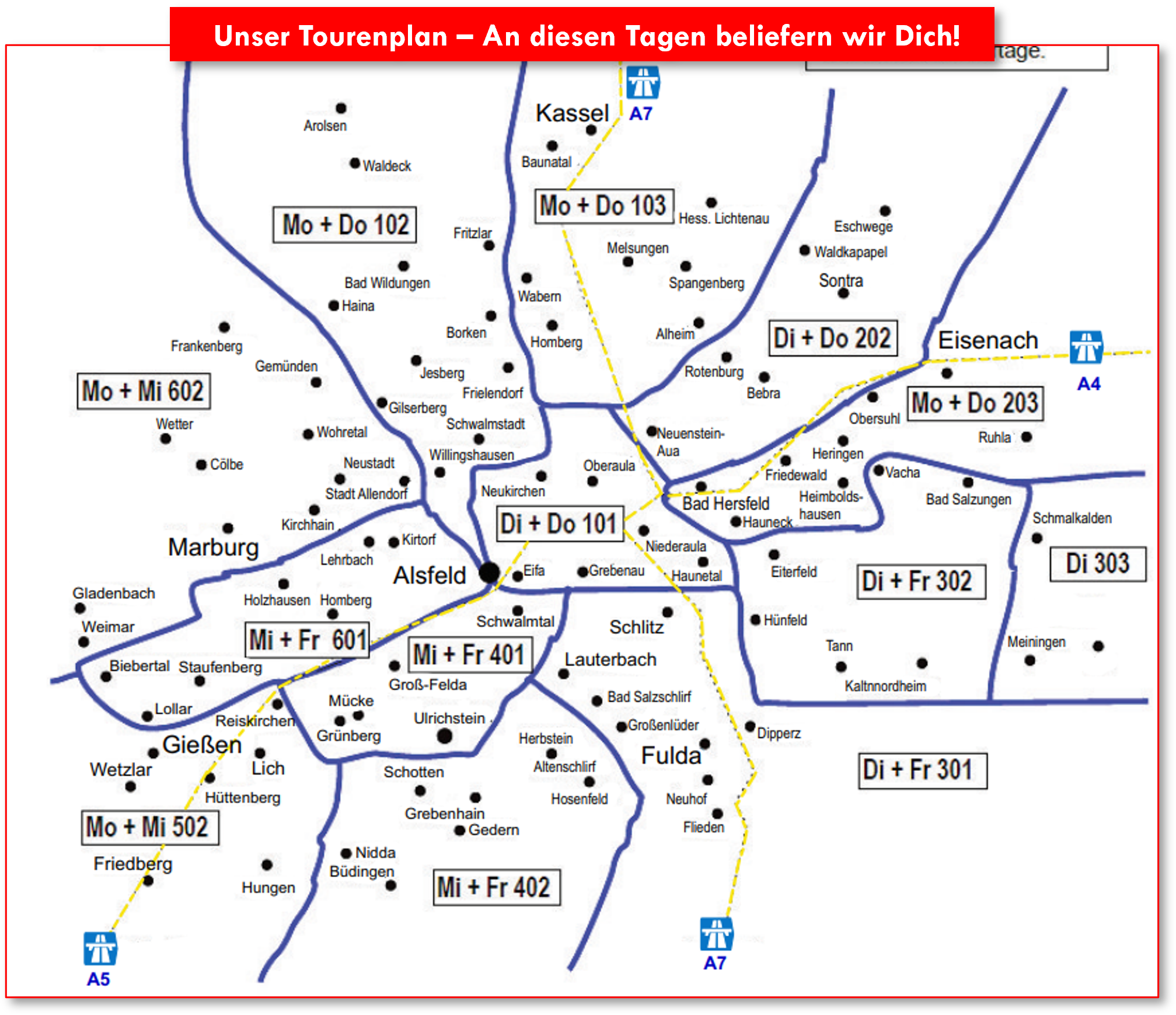 Unsere Fahrer fahren bis zu 2 Mal pro Woche in Ihr Gebiet.
